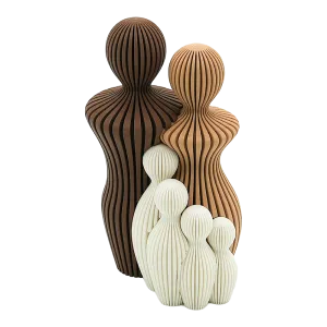 Deze familie beeldjes brengen warmte en persoonlijkheid in je huis. Ze hebben een modern uiterlijk door de strakke lijnen en een geribbelde textuur. Door de ronde vormen, maken ze elk poppetje speels en uniek. De familie beeldjes zijn 3D-geprint en gemaakt van duurzaam materiaal, met aandacht voor elk detail. Ze zijn stevig ontworpen en gaan lang mee. Perfect om je plank, kast of dressoir een moderne styling te geven, of als warm cadeautje voor een housewarming of verjaardag.