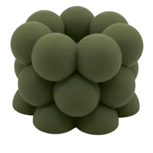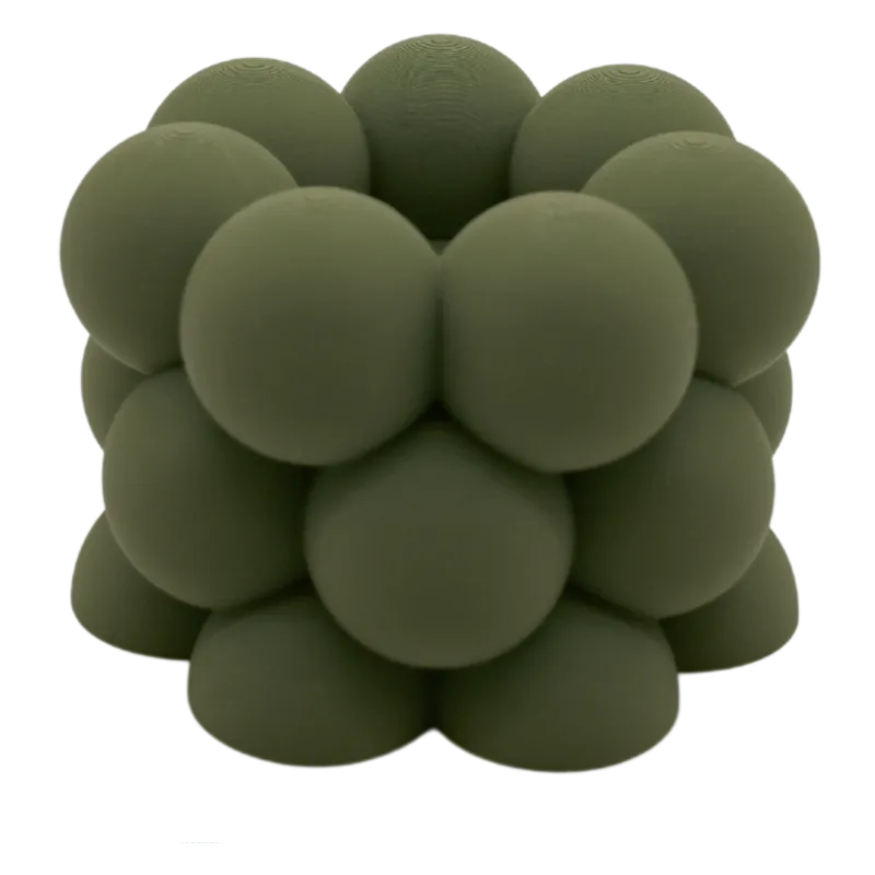 Gemaakt van milieuvriendelijk en innovatief 3D-geprint PLA, ook bekend als bioplastic, is de Waxinelichthouder Bubble niet alleen een esthetische verrijking, maar maakt ook een duurzaam statement. Verkrijgbaar in verschillende stijlvolle kleuren, biedt het de perfecte gelegenheid om je interieur een persoonlijke touch te geven. Kies jouw favoriete tint en laat het zachte licht van het waxinelicht je avonden verlichten met ontspannende warmte.