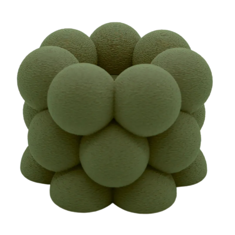 Gemaakt van hoogwaardig PLA, een duurzaam en recyclebaar bioplastic, maakt deze waxinelichthouder indruk met zijn milieuvriendelijke eigenschappen. De Bubble Fuzzy voelt niet alleen goed aan voor het oog maar ook voor de planeet. Dit duurzame materiaal is zorgvuldig 3D-geprint, wat zorgt voor een hoge precisie en een luxe uitstraling.