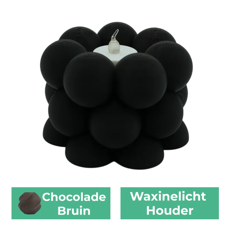 Gemaakt van milieuvriendelijk en innovatief 3D-geprint PLA, ook bekend als bioplastic, is de Waxinelichthouder Bubble niet alleen een esthetische verrijking, maar maakt ook een duurzaam statement. Verkrijgbaar in verschillende stijlvolle kleuren, biedt het de perfecte gelegenheid om je interieur een persoonlijke touch te geven. Kies jouw favoriete tint en laat het zachte licht van het waxinelicht je avonden verlichten met ontspannende warmte.