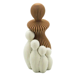 Deze familie beeldjes brengen warmte en persoonlijkheid in je huis. Ze hebben een modern uiterlijk door de strakke lijnen en een geribbelde textuur. Door de ronde vormen, maken ze elk poppetje speels en uniek. De familie beeldjes zijn 3D-geprint en gemaakt van duurzaam materiaal, met aandacht voor elk detail. Ze zijn stevig ontworpen en gaan lang mee. Perfect om je plank, kast of dressoir een moderne styling te geven, of als warm cadeautje voor een housewarming of verjaardag.