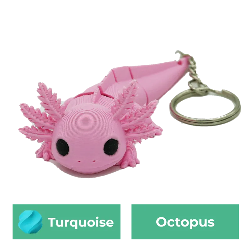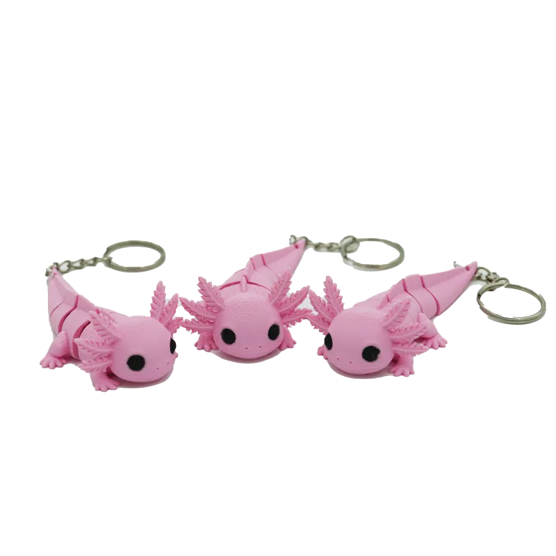 De 3D-geprinte axolotl sleutelhanger die jouw sleutelbos een speelse twist geeft! Dit kleine beestje is volledig flexibel dankzij zijn bewegelijke lijf. Met zijn vriendelijke gezicht en compacte formaat is hij zowel schattig als praktisch.