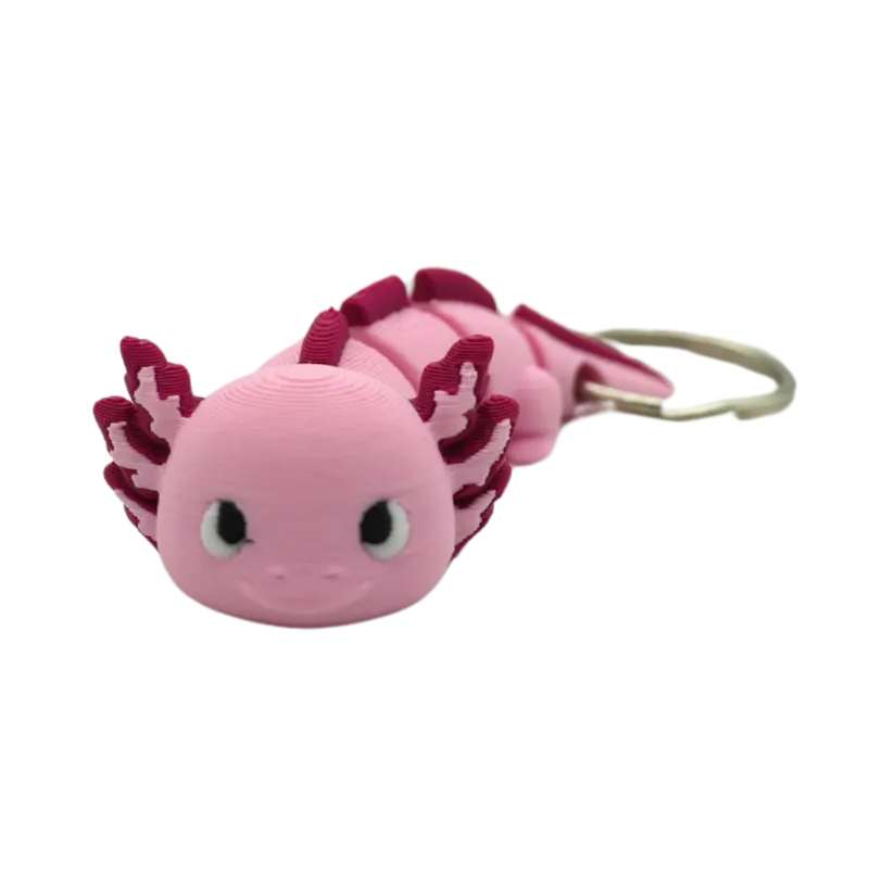 De 3D-geprinte axolotl sleutelhanger die jouw sleutelbos een speelse twist geeft! Dit kleine beestje is volledig flexibel dankzij zijn bewegelijke lijf. Met zijn vriendelijke gezicht en compacte formaat is hij zowel schattig als praktisch.