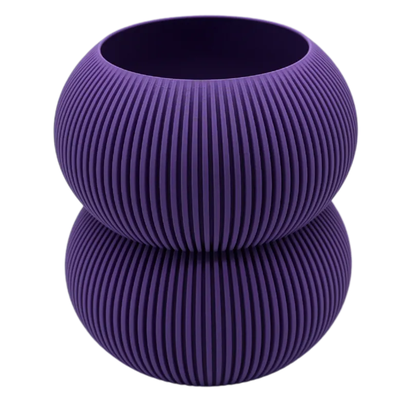 Alle vazen worden 3D-geprint met PLA‑filament. Dit is een biologisch afbreekbaar bioplastic dat vaak gemaakt wordt van maïszetmeel – duurzaam en lichtgewicht.
