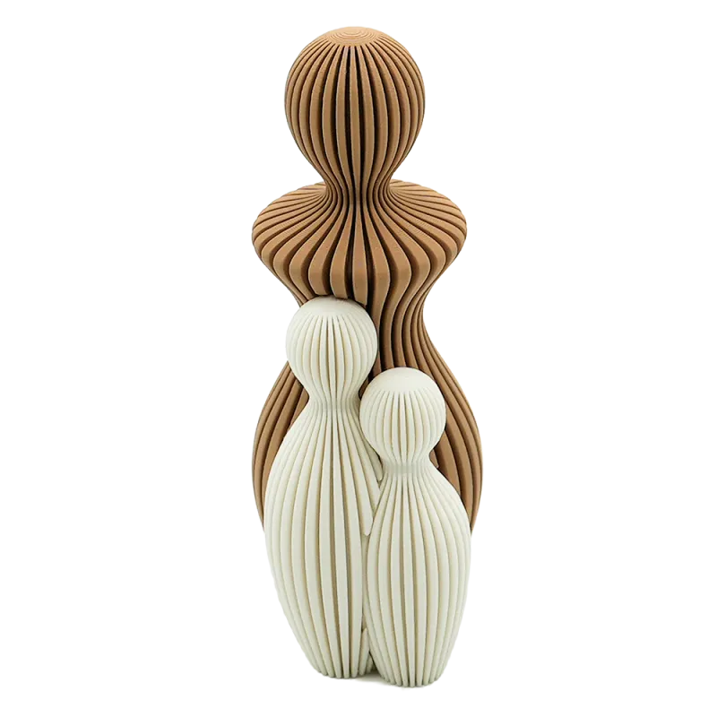 Deze familie beeldjes brengen warmte en persoonlijkheid in je huis. Ze hebben een modern uiterlijk door de strakke lijnen en een geribbelde textuur. Door de ronde vormen, maken ze elk poppetje speels en uniek. De familie beeldjes zijn 3D-geprint en gemaakt van duurzaam materiaal, met aandacht voor elk detail. Ze zijn stevig ontworpen en gaan lang mee. Perfect om je plank, kast of dressoir een moderne styling te geven, of als warm cadeautje voor een housewarming of verjaardag.