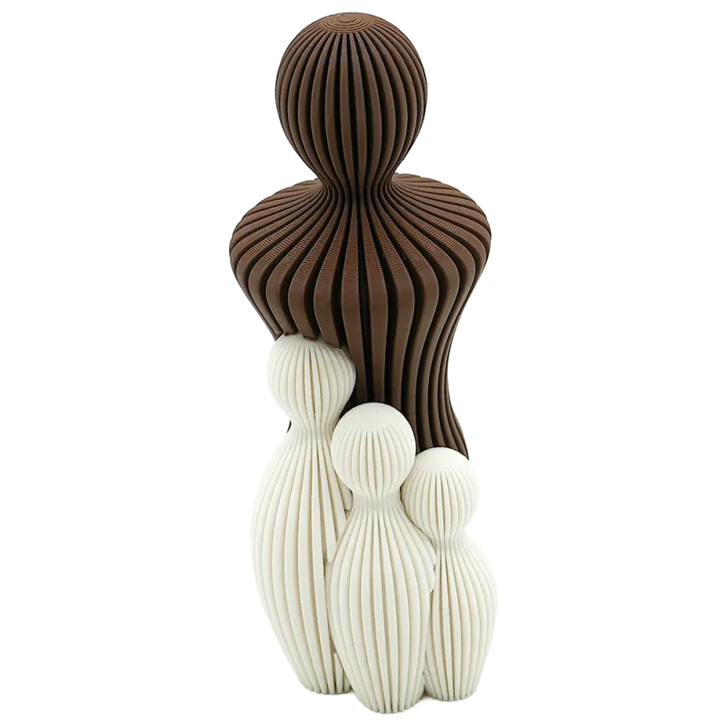 Deze familie beeldjes brengen warmte en persoonlijkheid in je huis. Ze hebben een modern uiterlijk door de strakke lijnen en een geribbelde textuur. Door de ronde vormen, maken ze elk poppetje speels en uniek. De familie beeldjes zijn 3D-geprint en gemaakt van duurzaam materiaal, met aandacht voor elk detail. Ze zijn stevig ontworpen en gaan lang mee. Perfect om je plank, kast of dressoir een moderne styling te geven, of als warm cadeautje voor een housewarming of verjaardag.