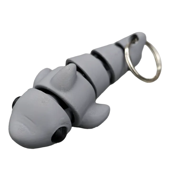 De Flexi Haai sleutelhanger is een speels en stoer 3D-design dat direct opvalt. Het herkenbare haai-lijfje en de flexibele vormen maken de sleutelhanger uniek en geven hem een dynamische uitstraling, terwijl hij moeiteloos meebeweegt met je sleutelbos of tas. Gemaakt van duurzaam 3D-geprint PLA, voelt de sleutelhanger licht aan maar is hij stevig genoeg voor dagelijks gebruik. Perfect als opvallend accessoire voor jezelf, of als origineel cadeautje voor vrienden en familie. • Zo geef je je sleutels pas echt karakter.