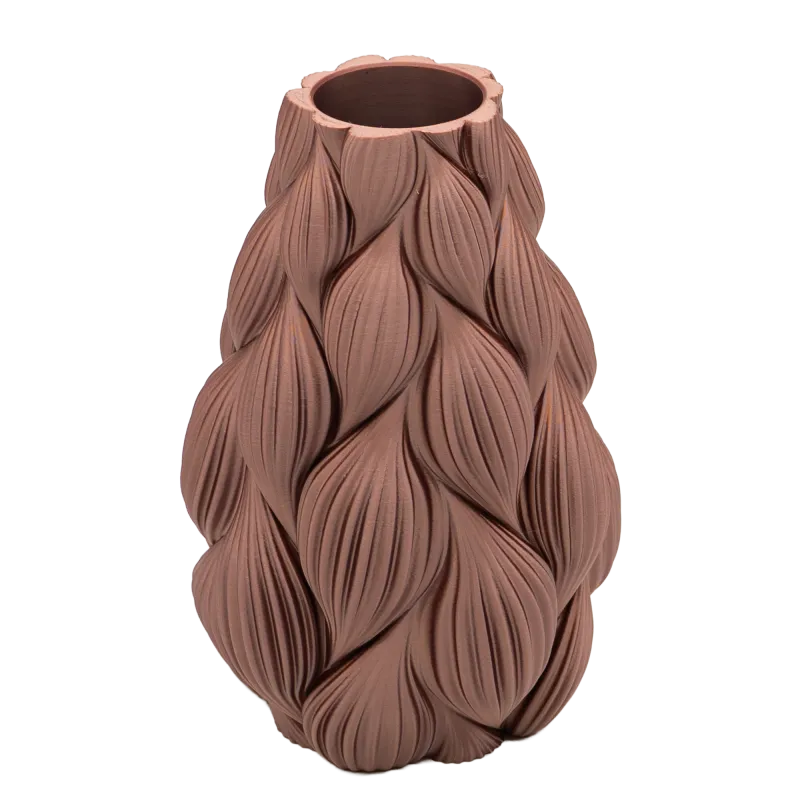 Alle vazen worden 3D-geprint met PLA‑filament. Dit is een biologisch afbreekbaar bioplastic dat vaak gemaakt wordt van maïszetmeel – duurzaam en lichtgewicht.