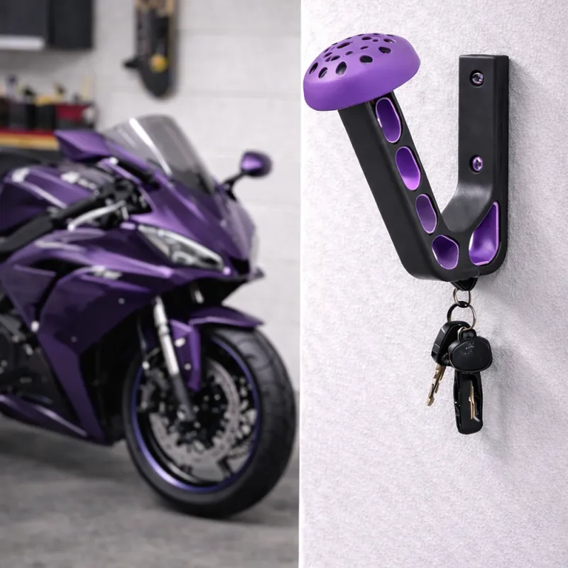 Motor helm houder inclusief haakje voor sleutels | Paars
