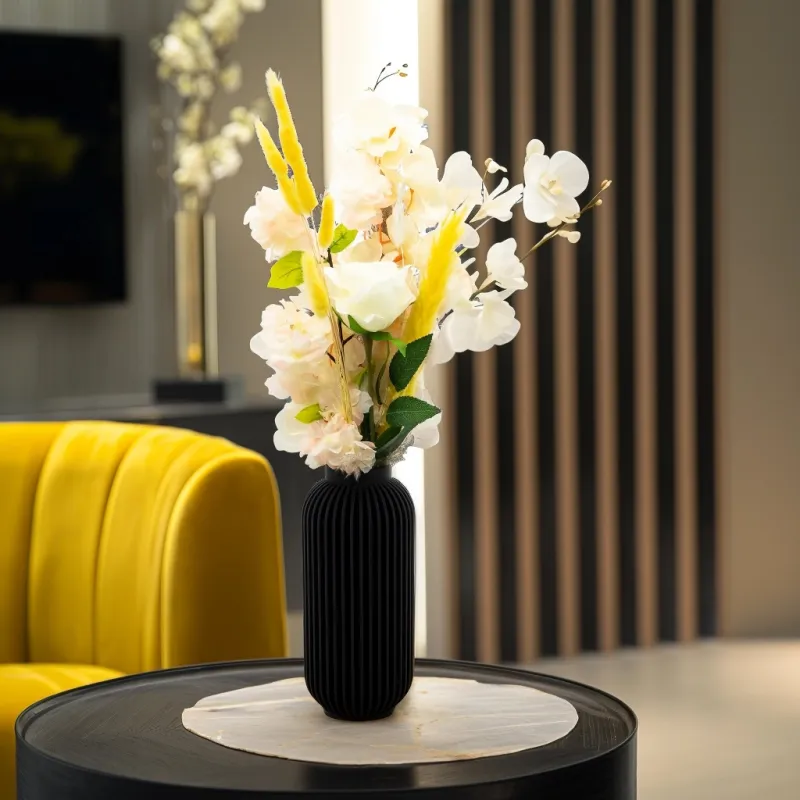 Alle vazen worden 3D-geprint met PLA‑filament. Dit is een biologisch afbreekbaar bioplastic dat vaak gemaakt wordt van maïszetmeel – duurzaam en lichtgewicht.